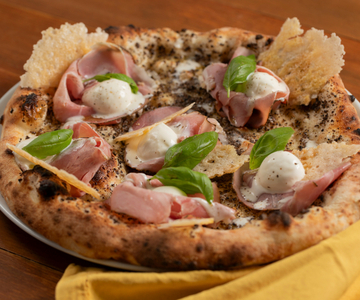 Pizza's en Focaccia Pizza met truffelcrème en ham Gourmetpizza met truffelcrème, gekookte ham, buffelmozzarella en krokante Grana-wafels: een verfijnd recept dat je eenvoudig thuis kunt… 50 min READ RECIPE