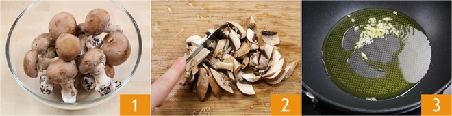 Om de bierrollade met spek en paddenstoelen te bereiden, begin je met het maken van de paddenstoelencrème die gebruikt wordt om de kalfsrollade te vullen. Maak de paddenstoelen goed schoon 1 volgens onze Hoe eekhoorntjesbrood schoon te maken, en snijd ze vervolgens in plakjes 2. Verhit 2 eetlepels extra vergine olijfolie in een pan met de geplette knoflookteen 3, voeg de paddenstoelen toe en bak 5 minuten.