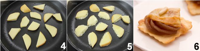 En wanneer de plaat goed heet is, leg je de stukjes scamorza erop 4. Zodra er aan een kant een goudbruin korstje is gevormd 5, draai je ze om om de andere kant te laten garen. Leg het plakje gerookte scamorza (til het op met een spatel) op elk bladerdeegje en garneer de hapjes met pijnboompitten 6!