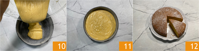 Hierna kun je het mengsel in een springvorm van 24 cm doen, die je tevoren hebt ingevet en met bloem bestoven 10. Bak de cake in een conventionele oven op 170 C gedurende ongeveer 50 minuten 11. Wanneer de cake met mascarpone in het beslag koud is, bestuif je hem naar smaak met poedersuiker 12.