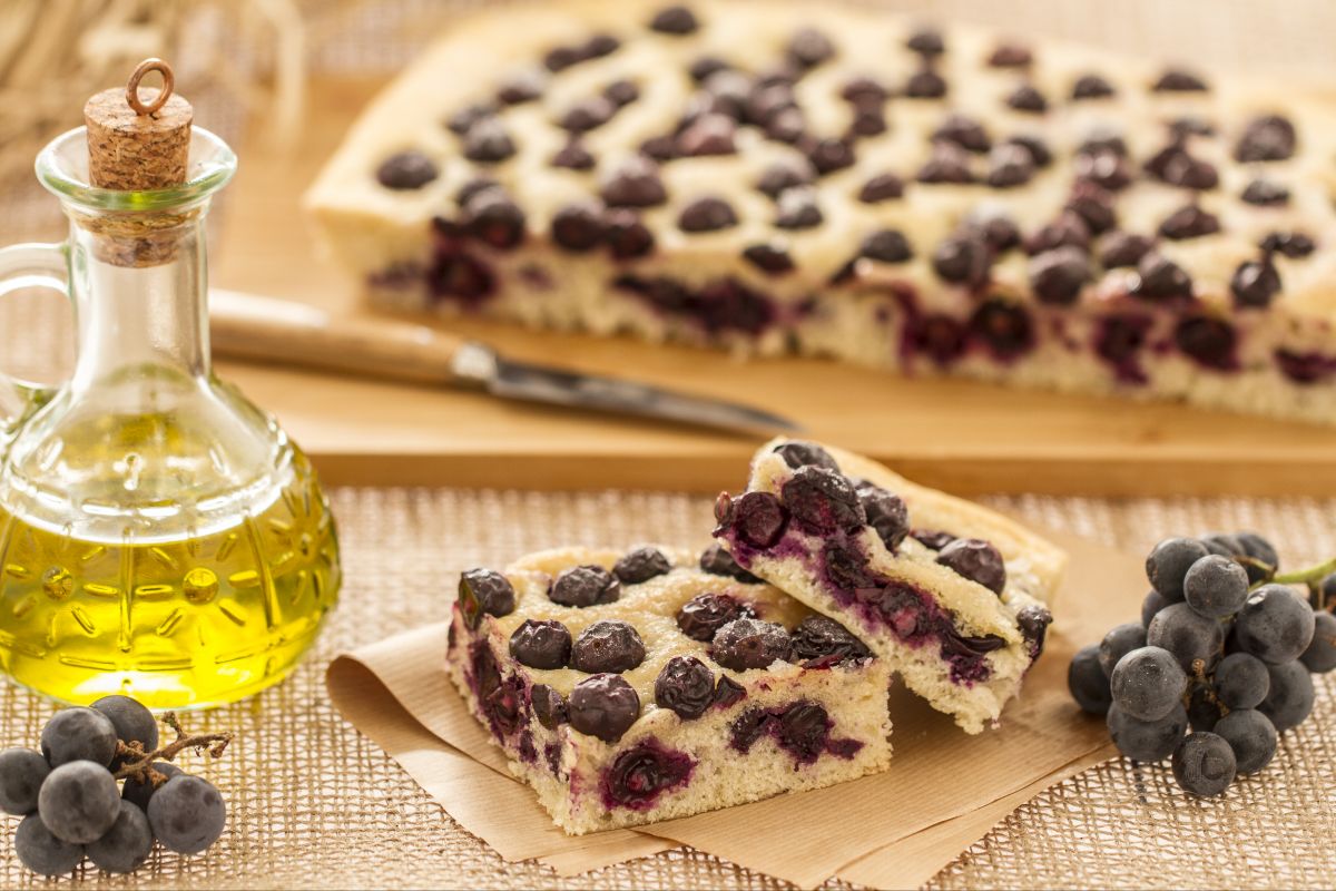 De ciaccia met druiven is een typisch Toscaanse focaccia die wordt bereid met reeds gerezen brooddeeg en verrijkt, in dit geval, met verse druiven. In Toscane bestaan er verschillende soorten schiacciata, zoete en hartige ciacce, allemaal bereid met een basis van gerezen brooddeeg en verrijkt met seizoensgebonden ingrediënten: het is een specialiteit die verband houdt met het oogstseizoen en in Florence wordt het "stiaccia" genoemd.