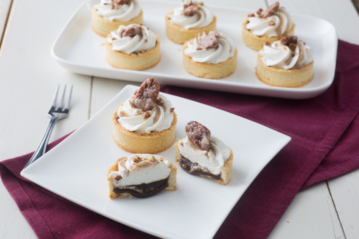 Wanneer zoet en zout elkaar ontmoeten is het resultaat altijd verrassend, vooral bij een dessert: een klassiek snufje zout is namelijk perfect om de zoetheid van de andere ingrediënten te versterken en zorgt voor een harmonische smaakbalans. Met deze taartjes met gezouten karamel en gekaramelliseerde noten willen we je verleiden en je smaakpapillen meenemen op een ervaring met veel nuances! We beginnen met de zoete toets van het zanddeeg die contrasteert met de hartigheid van de karamel, en eindigen met de zachte frisheid van ongezoete opgeklopte room en het krokante accent van gekaramelliseerde pecannoten — een heerlijk crescendo om hap na hap van te genieten. Al water in de mond? Dan is het tijd om het recept voor deze taartjes met gezouten karamel en pecannoten uit te proberen!