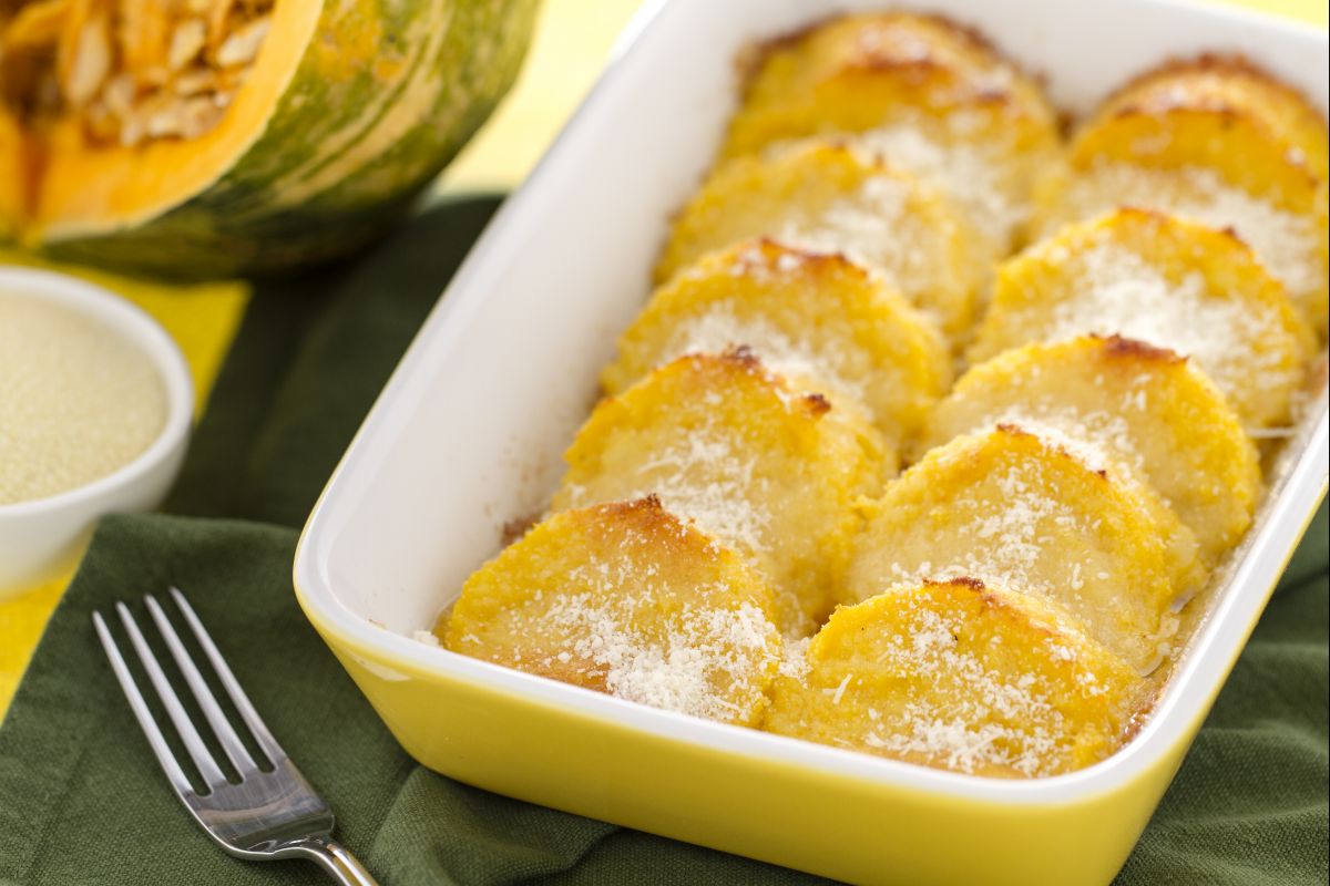 Als je dol bent op traditionele gnocchi alla romana, dan zal onze versie van pompoen gnocchi op Romeinse wijze je bij de eerste hap al veroveren! Aan het klassieke griesmeeldeeg hebben we de zoete pompoenpuree toegevoegd om een nog intensere smaak aan de gnocchi te geven, terwijl de klassieke en typische consistentie behouden blijft. Pompoen gnocchi op Romeinse wijze is een verrukkelijk en vullend voorgerecht, perfect om jezelf te verwennen aan tafel tijdens het winterseizoen!