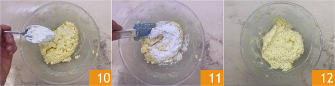 Voeg ook de bloem toe 10 en meng alles met een spatel (marisa) 11 tot je een homogeen mengsel krijgt 12.