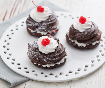 Taarten & Bakken Zwarte Woud cheesecake De Zwarte Woud cheesecake is een koude taart, geïnspireerd door de beroemde Duitse taart, die lagen van chocoladecrème, room en kersen afwisselt! 4.2 Average 50 min Kcal 440 READ RECIPE