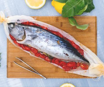 Hoofdgerechten Bonito in papillote met kerstomaatjes Palamita (ook wel tonnetto) is een vis met stevig, heel smaakvol vlees, vergelijkbaar met makreel: de ideale bereidingswijze is in papillote. 4.1 Easy 40 min Kcal 250 READ RECIPE