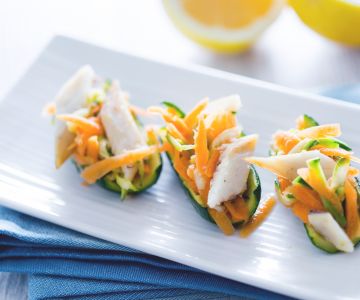 Hapjes Gevulde courgettes met gerookte zeebaars De gevulde courgettes met gerookte zeebaars zijn perfect om als voorgerecht te serveren! Ze zijn fris en delicaat en zullen iedereen bevallen! 4.4 Very easy 35 min Kcal 207 READ RECIPE