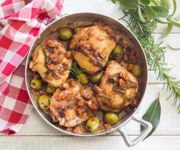 Hoofdgerechten Kip op jagerswijze zonder tomaat Kip op jagerswijze in het wit is een makkelijk te bereiden en erg smaakvol hoofdgerecht. Een alternatieve versie zonder tomaat, met groene olijven! 40 min Kcal 557 READ RECIPE
